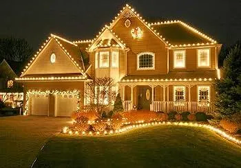 Classic large-bulb Christmas lights for rooflines & trees.